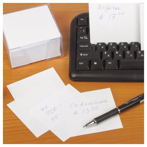 Блок для записей BRAUBERG в подставке прозрачной куб 9х9х5 см белый белизна 95-98% 122224