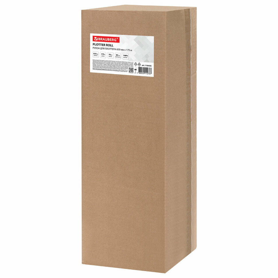Рулон для плоттера 620 мм х 175 м х втулка 76 мм 80 г/м2 белизна CIE 162% диаметр 170 мм BRAUBERG 110456