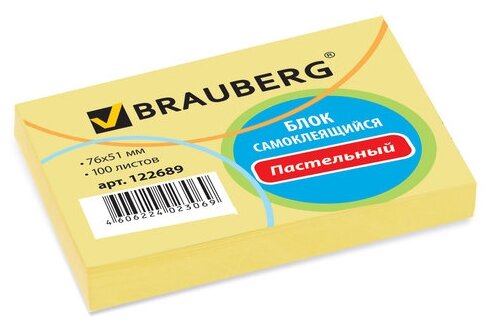 Блок самоклеящийся BRAUBERG 100 листов 76х51 мм желтый 122689