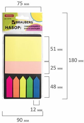| Прочее | Работая над документом или книгой, отмечайте важные места самоклеящимися закладками и делайте заметки на клейких листочках.,,Характеристики,Ширина:51 мм,Длина:75 мм,Количество блоков |