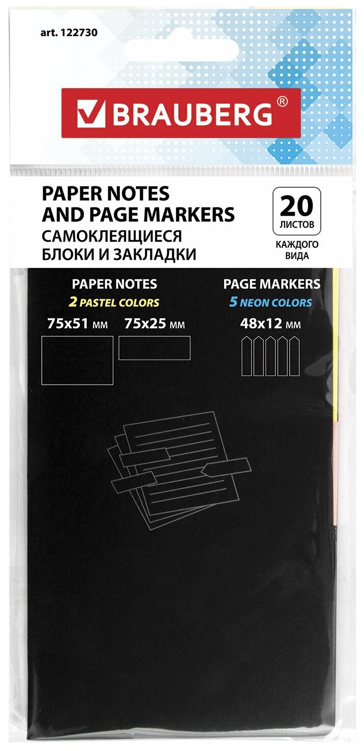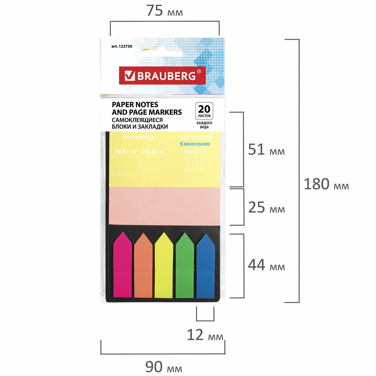 Закладки BRAUBERG 20 листов 51х75 мм ассорти (122730)