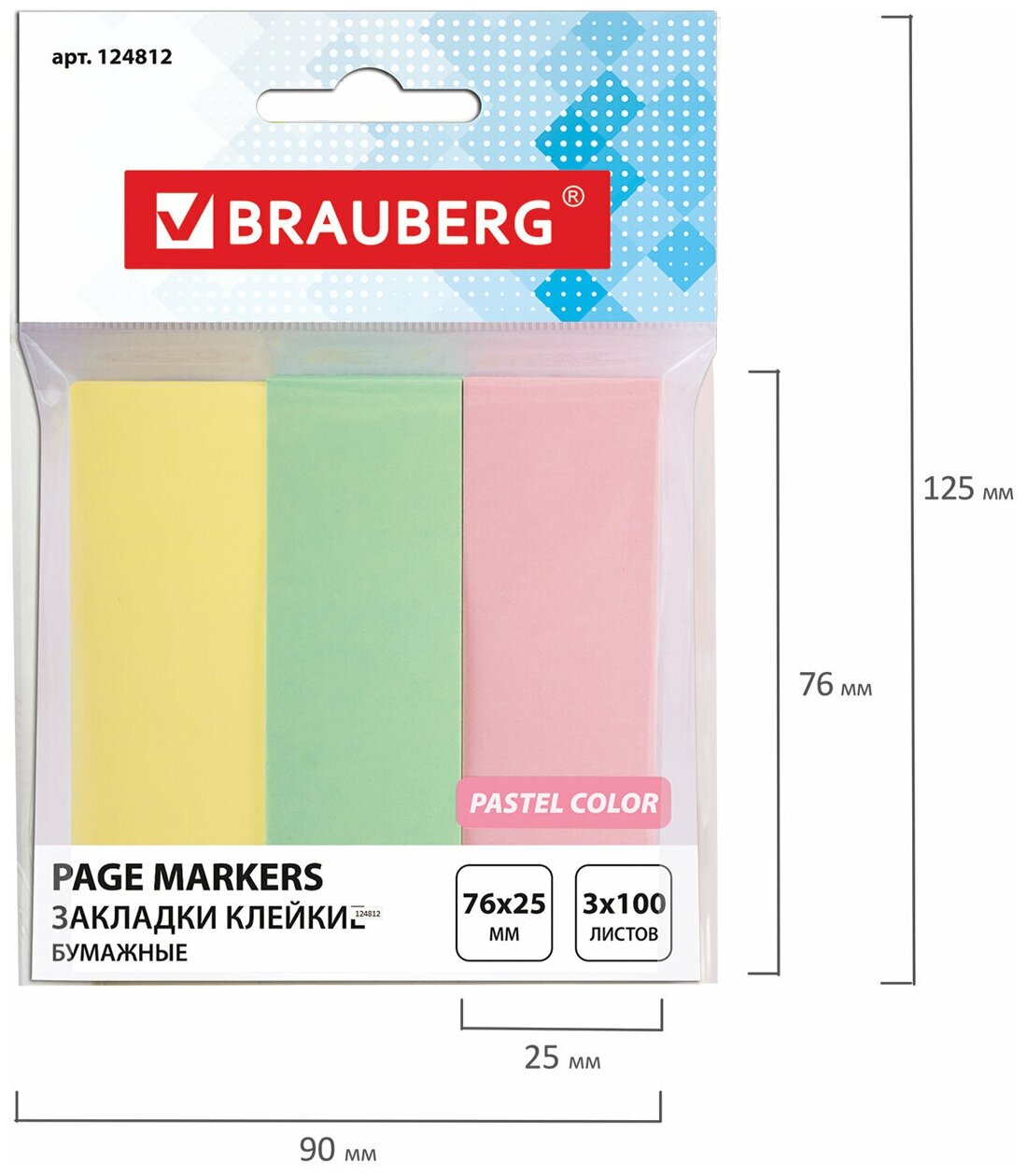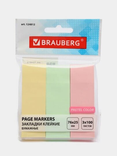 Яркие бумажные закладки BRAUBERG акцентируют внимание на важных страницах книги, журнала, каталога и др.Набор бумажных закладок 3 пастельных цветов размером 76х25 мм состоит из 300 листов, по 100 закладок каждого цвета. Клейкий слой - 22 Н/м. Легко клеятся к любой поверхности и не оставляют следов. Материал закладок позволяет делать надписи ручкой и карандашом. Поставляются в полиэтиленовом пакете с европодвесом.Клейкие закладки BRAUBERG помогут правильно организовать рабочее пространство. Выполнять повседневные задачи станет проще, чем когда-либо! Приобрести можно в нашем интернет-магазине.