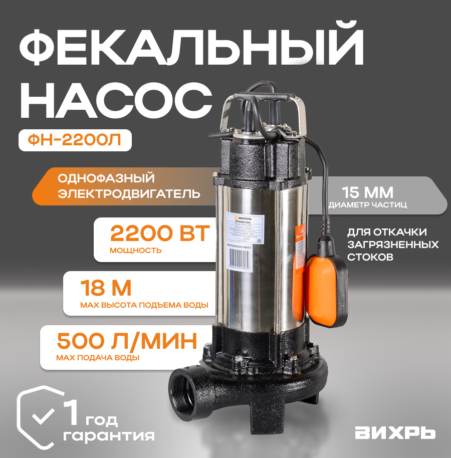 - Фекальный насос ВИХРЬ ФН-2200Л