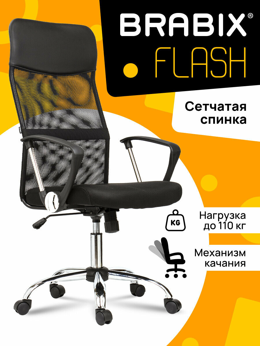 Кресло BRABIX "Flash MG-302" с подлокотниками хром черное 530867