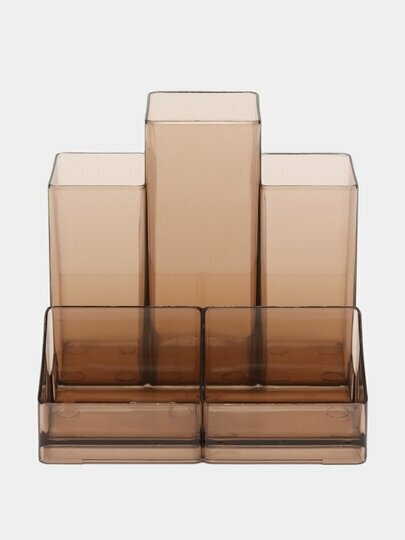 | Прочие особенности и свойства | Практичная компактная подставка для пишущих принадлежностей и канцелярских мелочей. Изготовлена из высококачественного пластика. Характеристики Тип товара:подставка-органайзер Цвет:черный Материал |