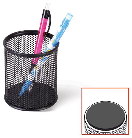 | Прочие особенности и свойства | Долговечная металлическая подставка-органайзер с круглым основанием предназначена для хранения различных канцелярских принадлежностей. Характеристики Тип товара:подставка-органайзер Цвет:черный Материал |