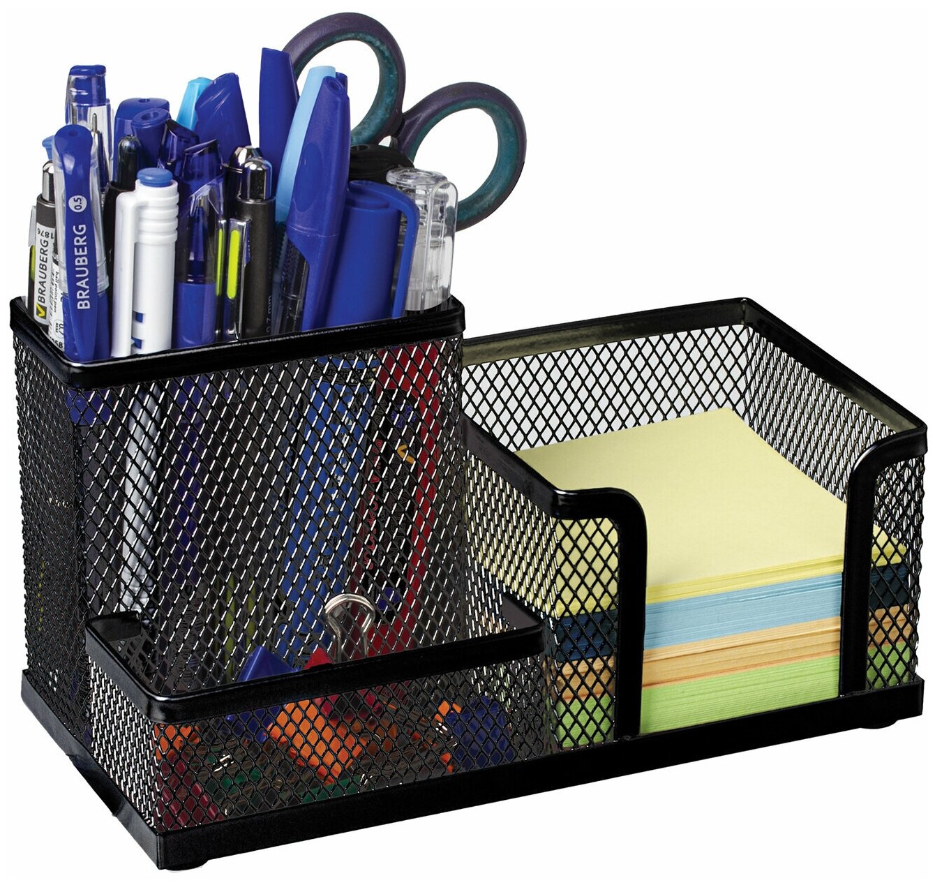 | Прочие особенности и свойства | Практичная металлическая подставка-органайзер для хранения различных канцелярских принадлежностей. Подставка-органайзер упакована в фирменную коробку. Характеристики Тип товара:подставка-органайзер Цвет:черный Материал |