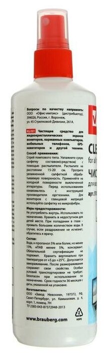 Чистящая жидкость-спрей для LCD -мониторов Brauberg »