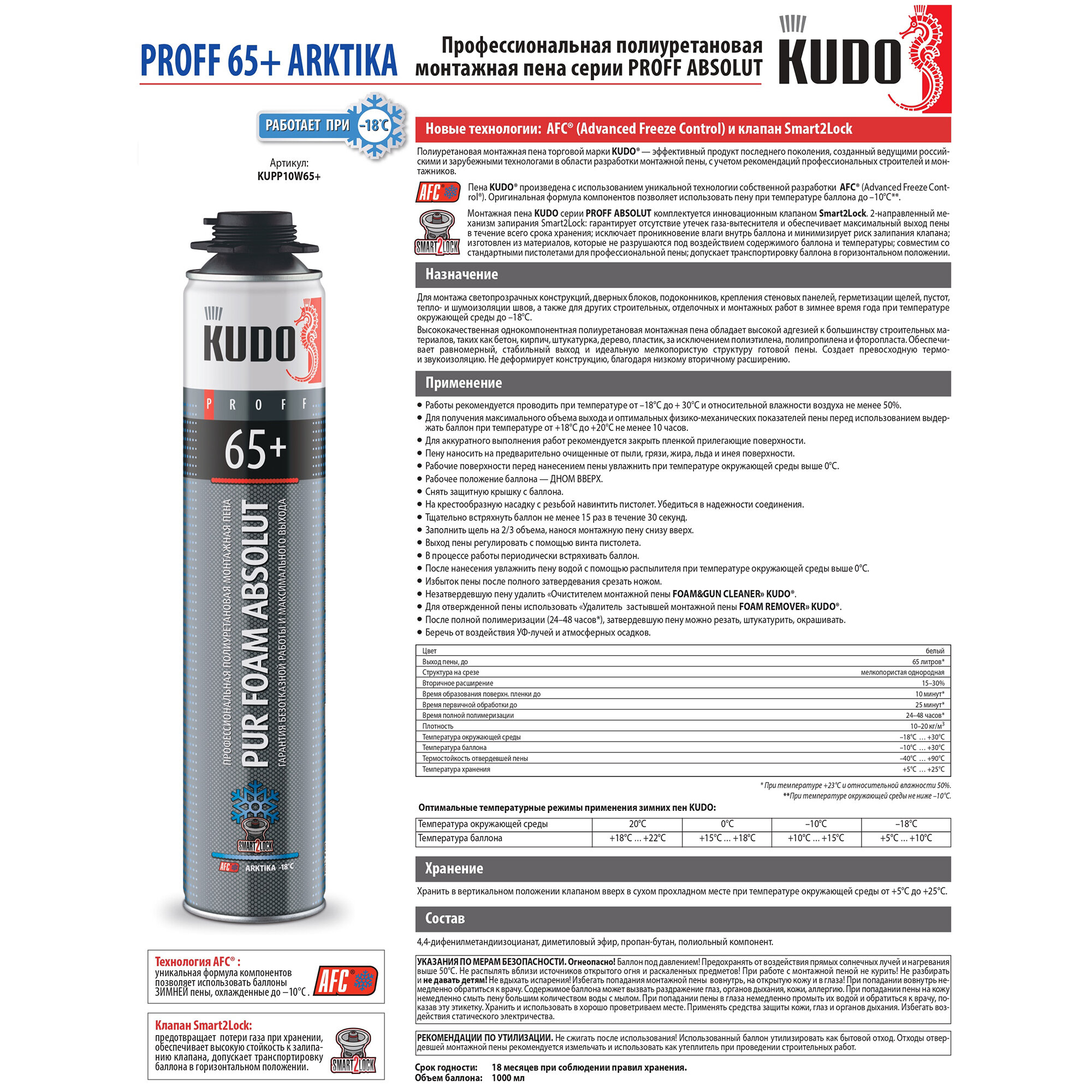 ПЕНА ПИСТОЛЕТНАЯ "PROFF 65+ ARKTIKA -18°C" ПРОФИ ЗИМНЯЯ 1000 МЛ/930 Г (12) "KUDO" (KUPP10W65+)