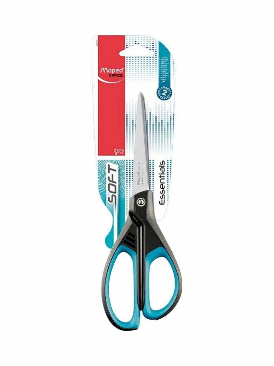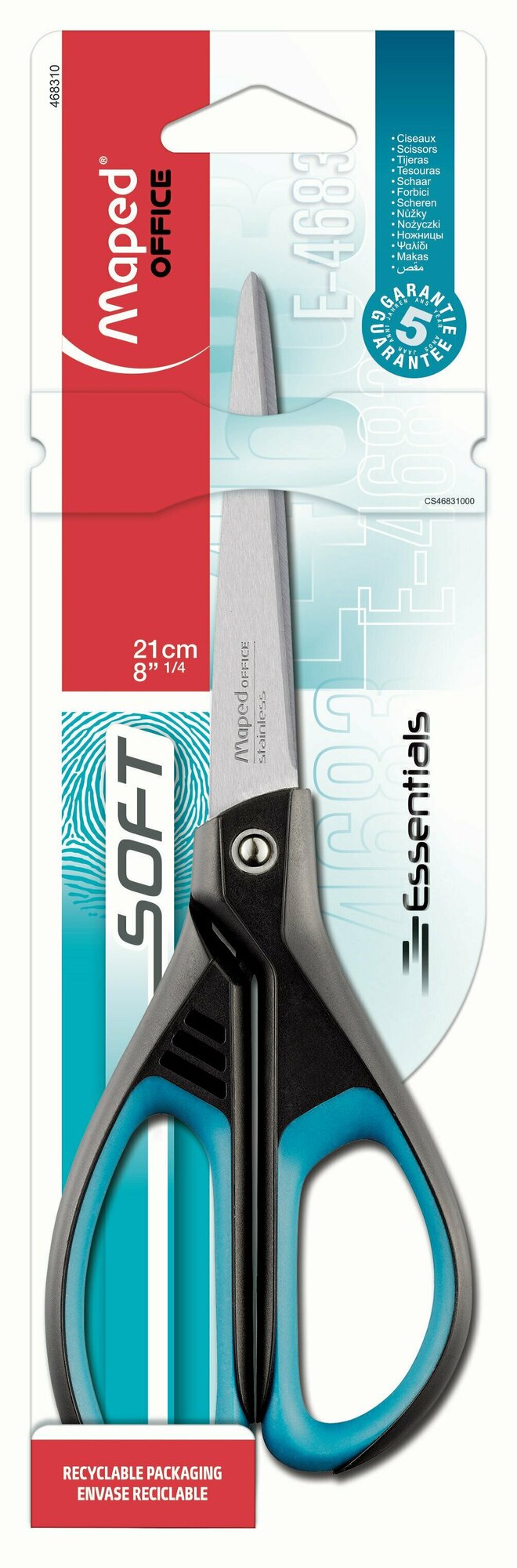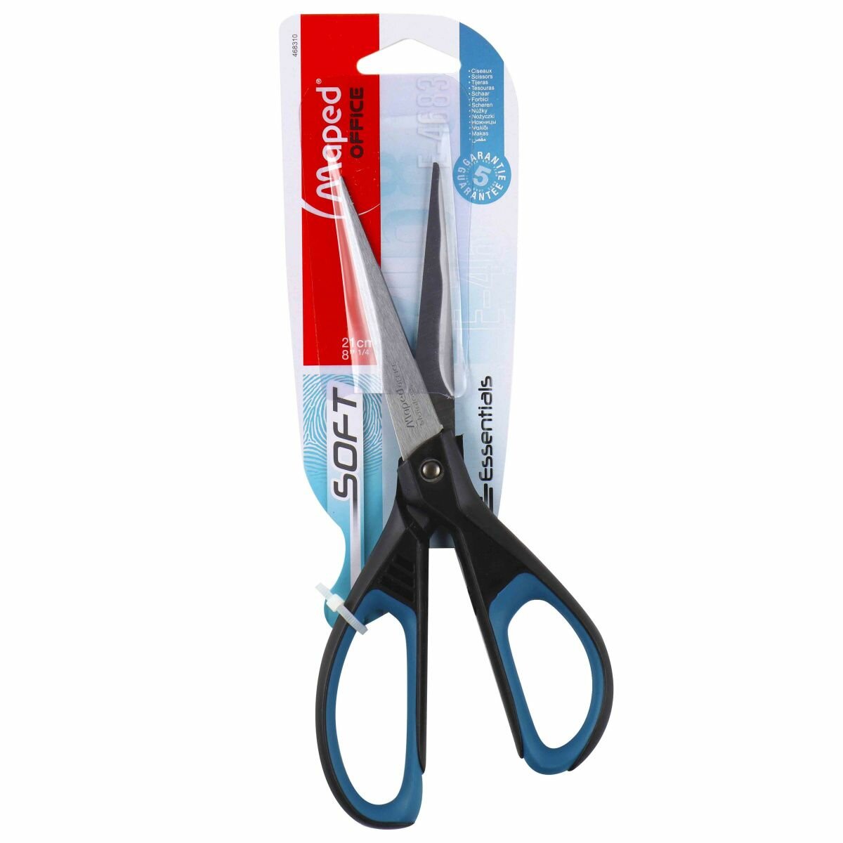 Ножницы MAPED (Франция) "Essentials Soft" 210 мм прорезиненные ручки черно-синие европодвес 469210 468310 ("Essentials Soft")