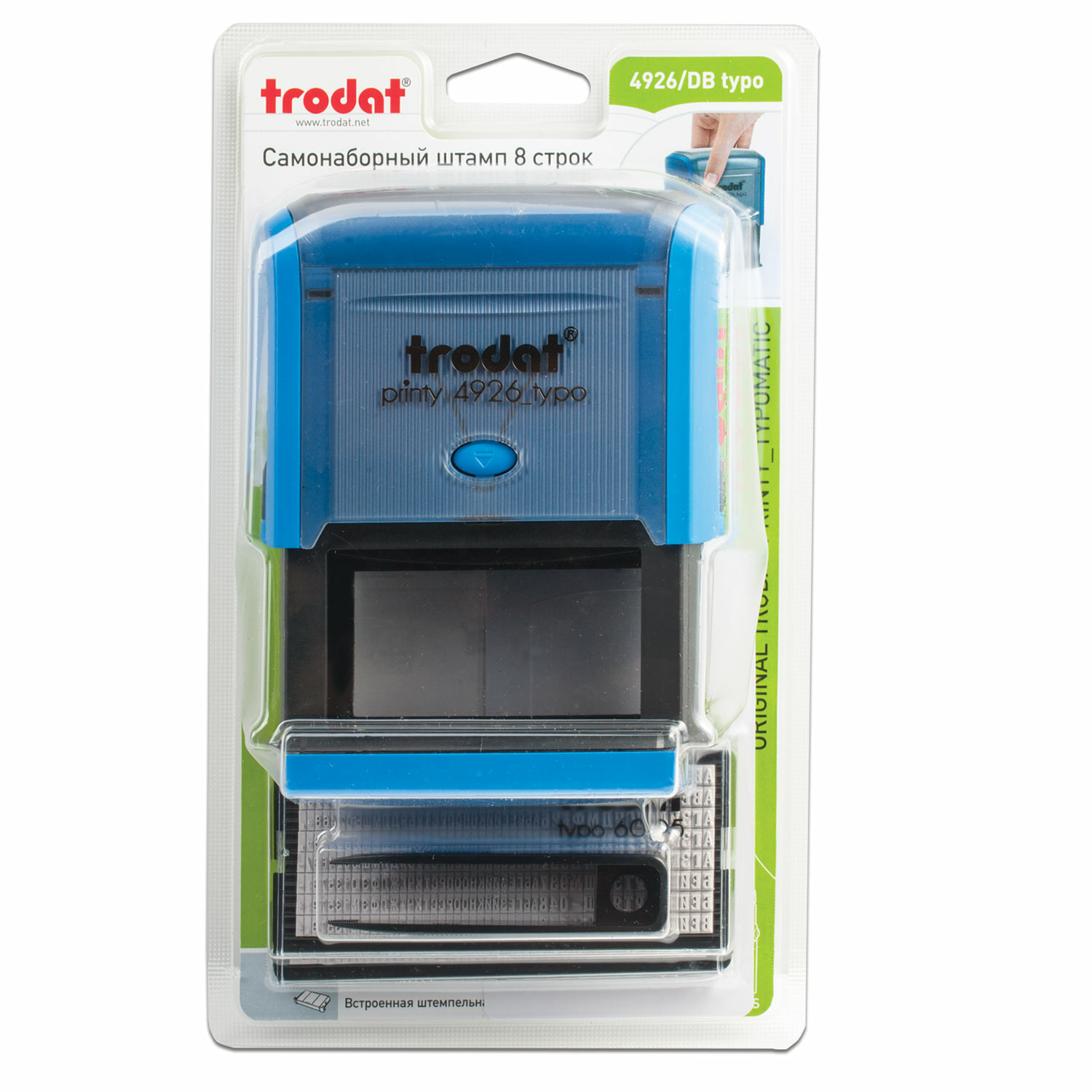 Штамп самонаборный 8-строчный оттиск 75х38 мм синий без рамки TRODAT 4926/DB (Австрия) корпус синий кассы в комплекте 53604