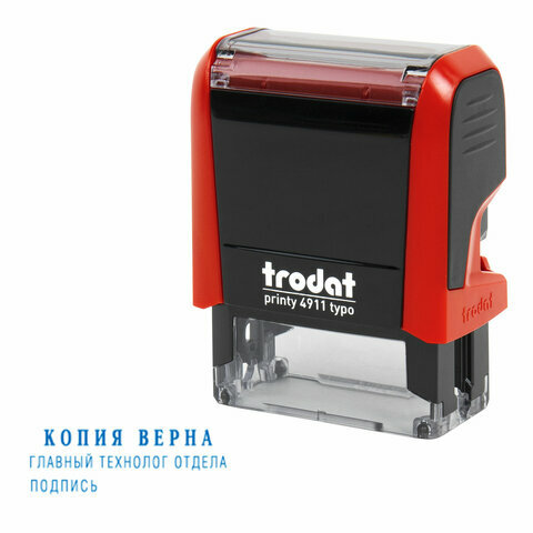 Штамп самонаборный 3-строчный оттиск 38х14 мм синий без рамки TRODAT 4911P4/DB (Австрия) корпус синий касса в комплекте 4911/DB