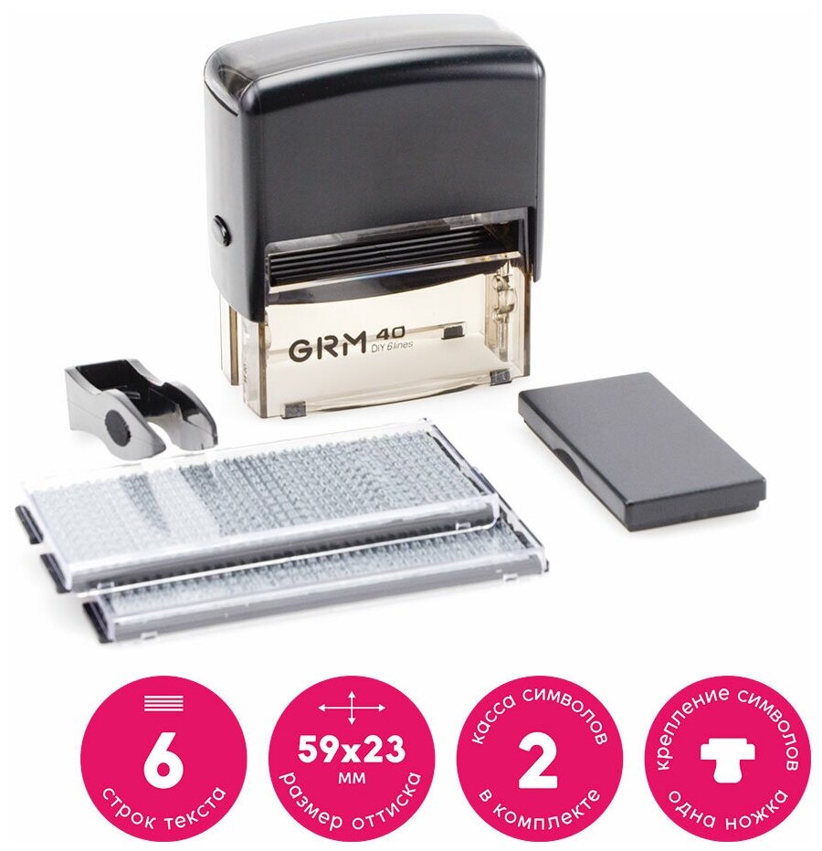 Штамп самонаборный GRM 40 6 строк касса в комплекте GRM40
