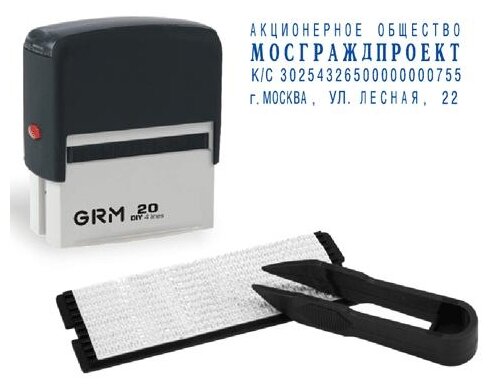 Штамп самонаборный 4-строчный оттиск 38х14 мм синий без рамки GRM 20 касса в комплекте европодвес GRM20
