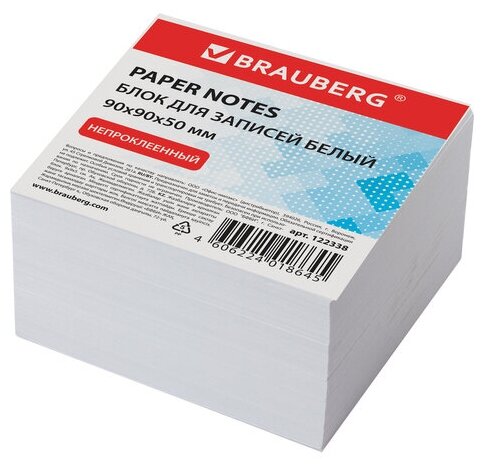 Блок для записей BRAUBERG непроклеенный куб 9х9х5 см белый белизна 95-98% 122338