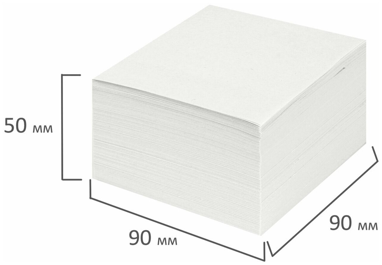 Блок высотой 5 см сложен из квадратных листов размером 9х9 см. Листы изготовлены из высококачественной офсетной бумаги плотностью 55 г/м2 и белизной 70-80%. Блок для записей подходит для письма любыми типами ручек и карандашей. Поставляется в плотной термоусадочной пленке, защищающей при транспортировке.
