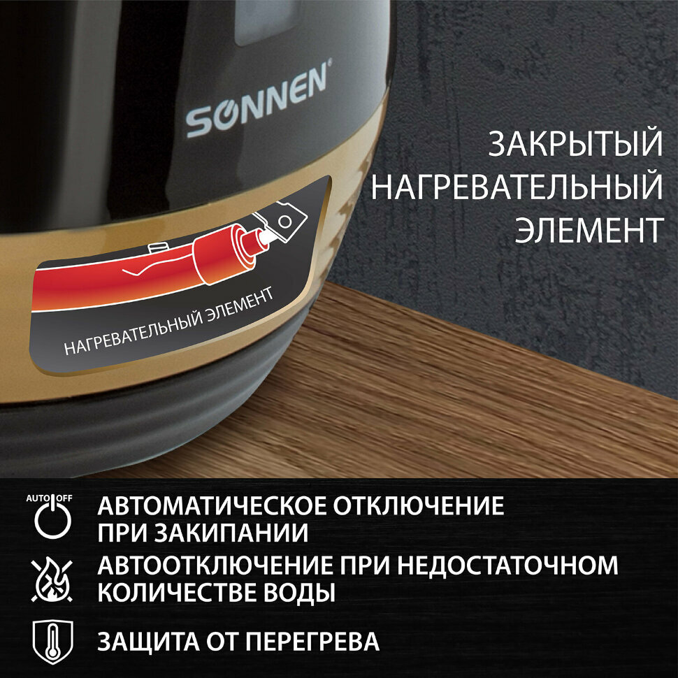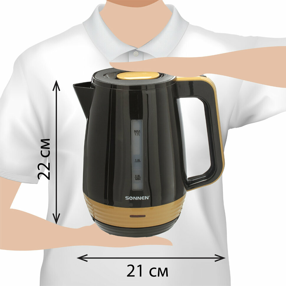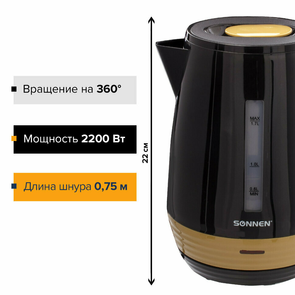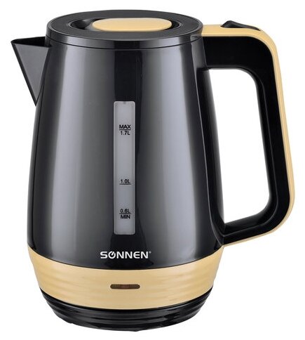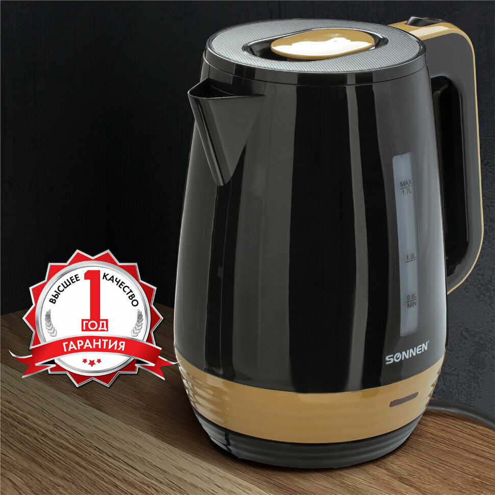 Чайник SONNEN KT-1776 17 л 2200 Вт закрытый нагревательный элемент пластик черный/горчичный 453418