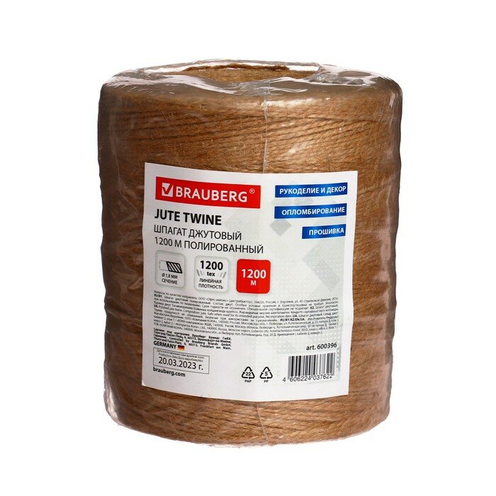 На сегодняшний день товар «Шпагат джутовый банковский BRAUBERG полированный длина 1200 м диаметр 18 мм линейная плотность 1200 текс 600396» можно купить с кешбеком в 1 магазине: Яндекс.Маркет