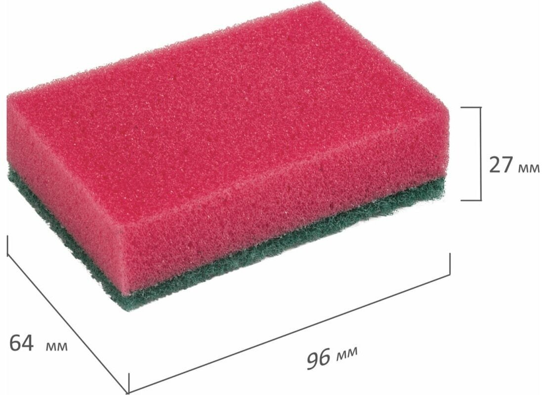 Губки бытовые для мытья посуды комплект 10 шт. поролон/абразив высота 27 х ширина 96 х глубина 64 мм ОФИСМАГ 601553