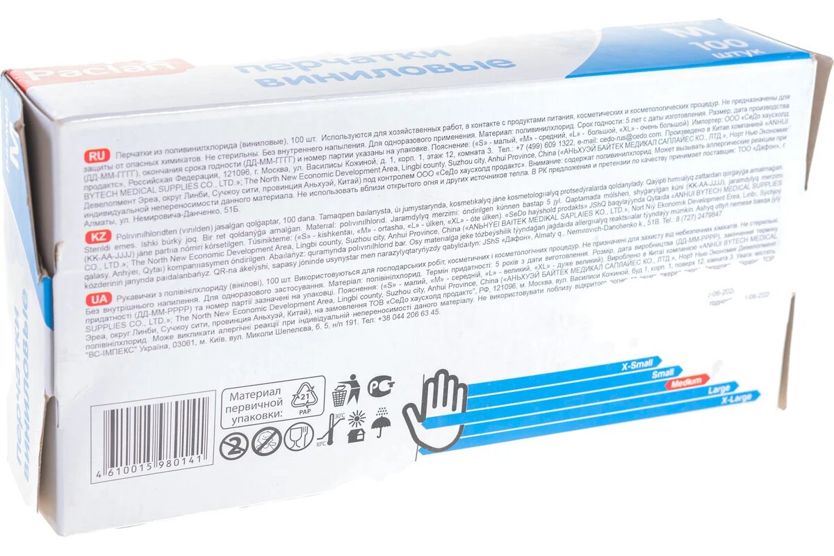 Сервис сравнения цен СкидкаГИД предлагает сравнить цены на товар «Перчатки виниловые КОМПЛЕКТ 50 пар (100 шт.) без хлопчатобумажного напыления размер M (средний) PACLAN (602485)»
