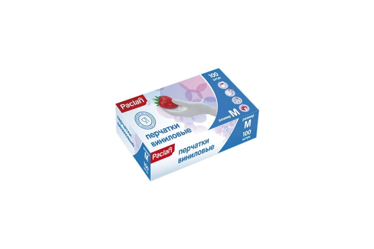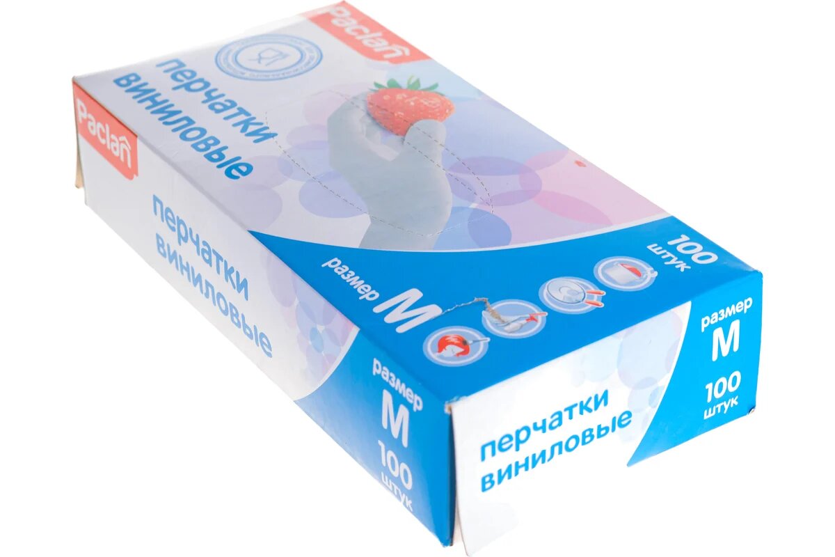 Перчатки виниловые КОМПЛЕКТ 50 пар (100 шт.) без хлопчатобумажного напыления размер M (средний) PACLAN (602485)