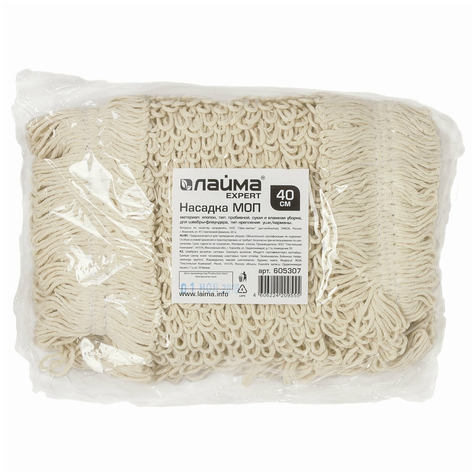 Насадка МОП плоская для швабры/держателя 40 см У/К (уши/карманы) пробивной хлопок ЛАЙМА EXPERT (605307)