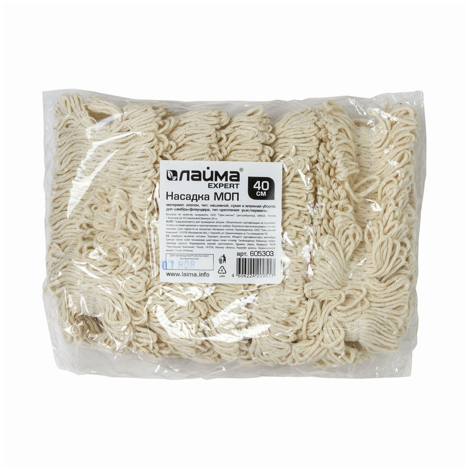 Насадка МОП плоская для швабры/держателя 40 см У/К (уши/карманы) нашивной хлопок ЛАЙМА EXPERT (605303)