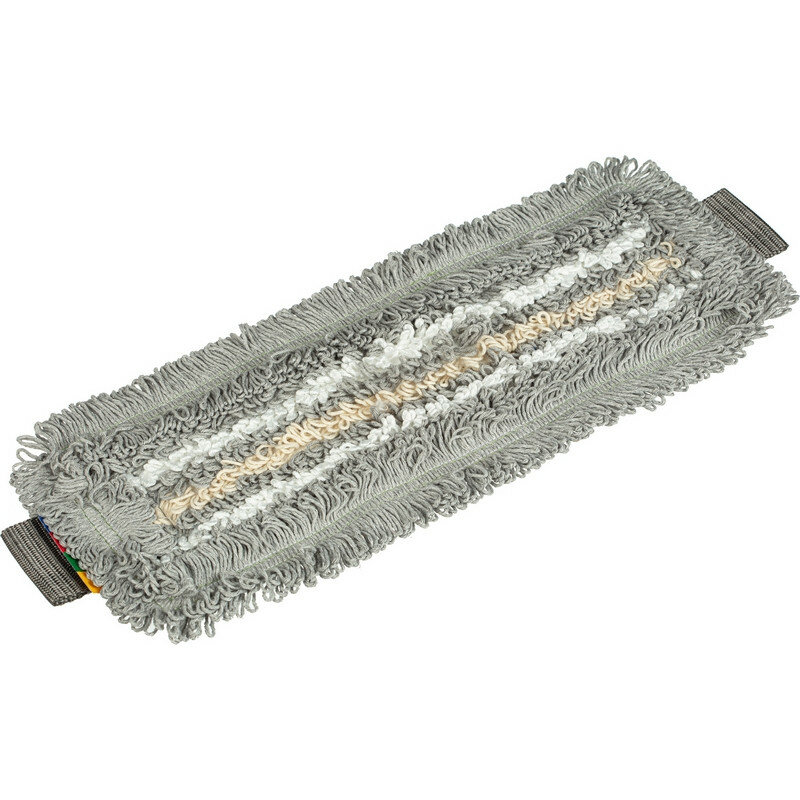 Универсальный, стойкий к износу и надежный МОП для уборки любых твердых напольных покрытий. Подметает, моет и впитывает. Хит продаж Vileda Professional.Данный МОП является частью системы УльтраСпид Про. Это уникальная профессиональная система для уборки средних площадей методом 'ведро-вода' с запатентованным высокоэффективным отжимом насадок.Особенности и преимущества:- высокоэффективная структура МОПа: белые микроволоконные нити отлично отмывают, серые комбинированные нити - оттирают и удерживают грязь, бежевые нити из хлопка - впитывают много грязи и влаги;- благодаря петельчатой конструкции МОП хорошо скользит по полу и собирает в петли загрязнения, удерживая их. Петли также облегчают разрыхление загрязнений;- плотная основа и окантовка, двойная прошивка увеличивают срок службы МОПа;- надежный тафтинг: петли МОПа держат форму, не скатываются и не распускаются в процессе уборки;- ремни МОПа имеют высокую устойчивость к усадке и деформации при соблюдении рекомендаций по использованию, стирке, сушке и хранени