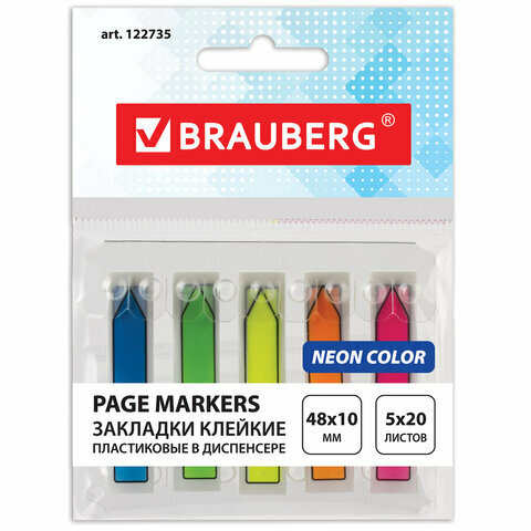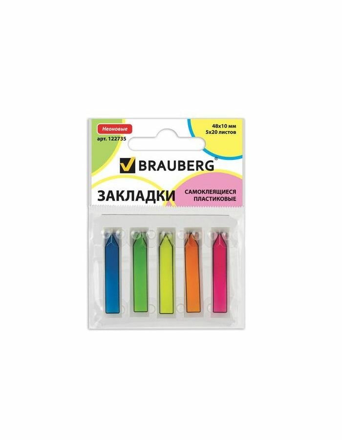 Закладки BRAUBERG 100 листов 48х10 мм ассорти 122735