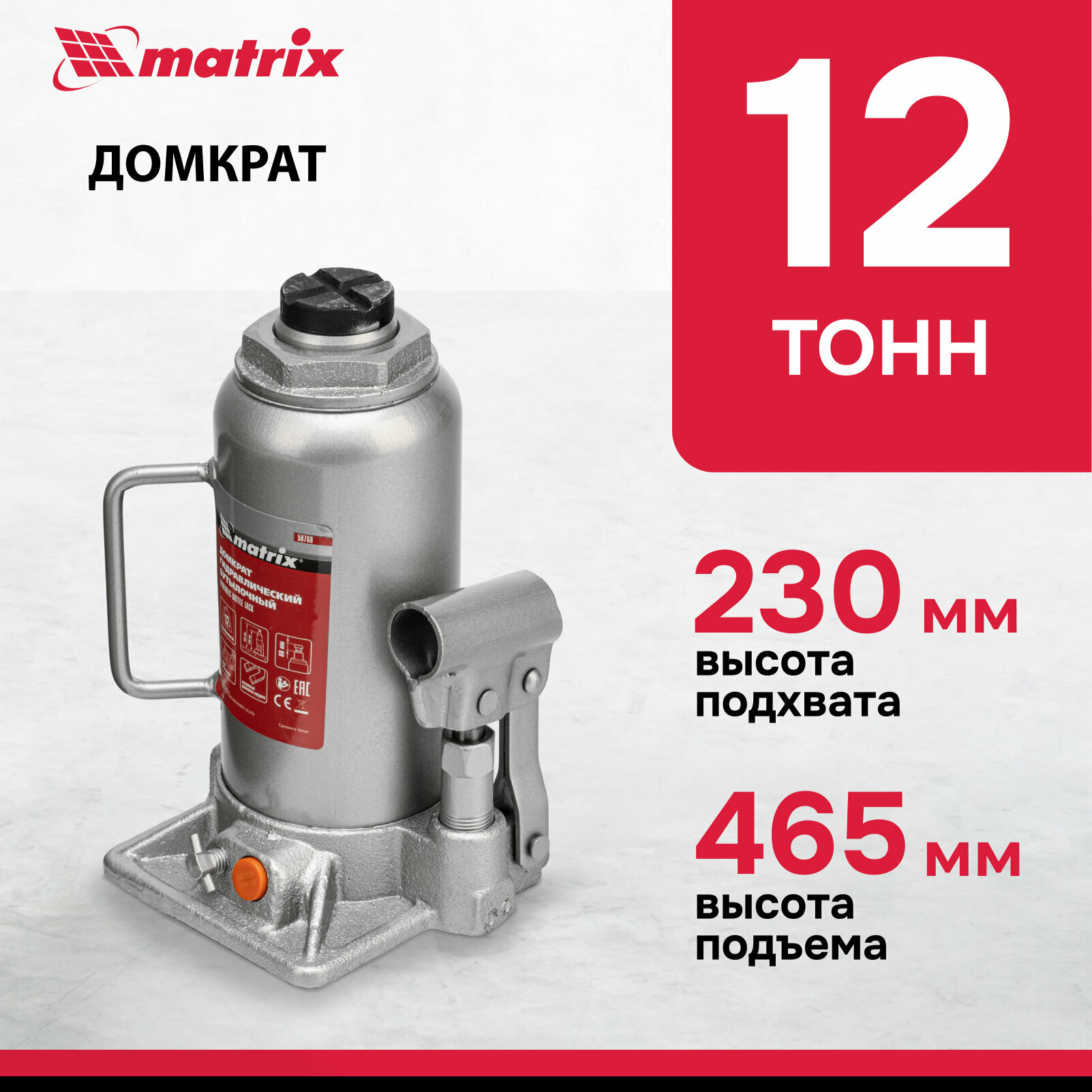 Домкрат MATRIX 50768 гидравлический бутылочный, 12 т — это устройство, которое используется для поднятия тяжелых грузов.