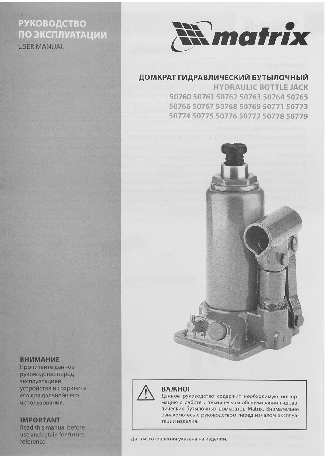 Гидравлический бутылочный домкрат Matrix »
