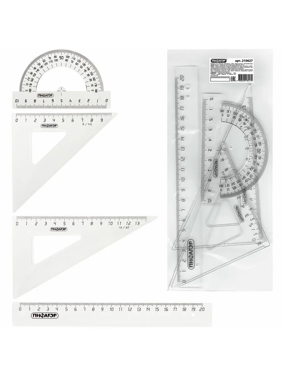 Набор чертежный ПИФАГОР средний 20 см пластик