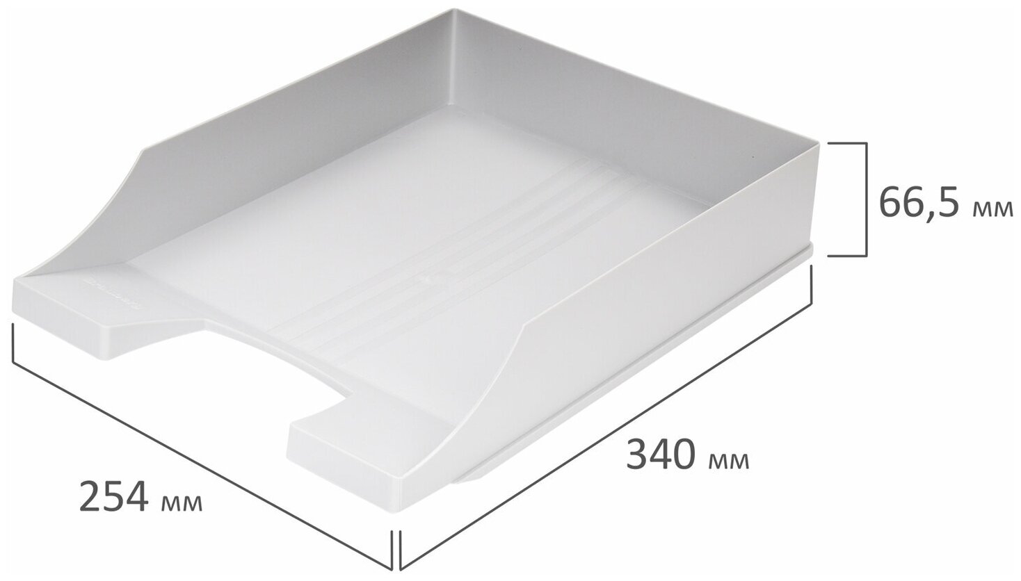 | Прочие особенности и свойства | Классический прочный и надежный лоток для бумаг формата А4. Позволяет организовать рабочее место и экономит пространство на столе. |