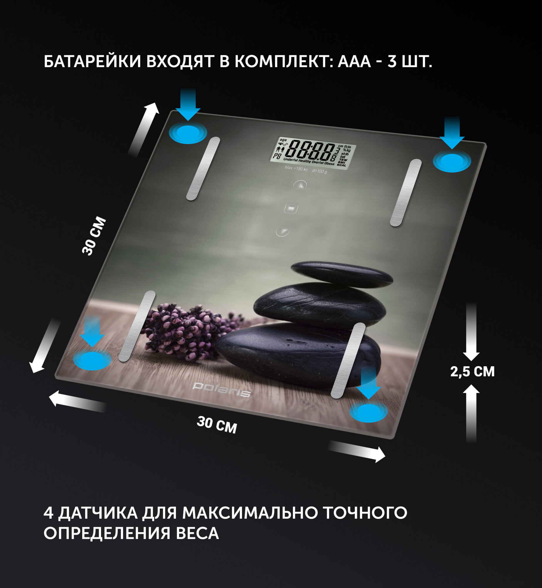 Весы напольные электронные Polaris PWS 1857DGF макс.180кг рисунок