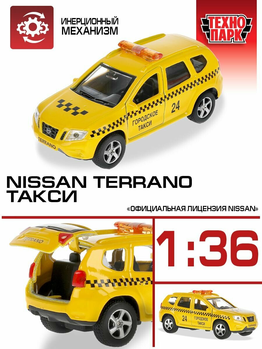 На сегодняшний день товар «МАШИНА "ТЕХНОПАРК" МЕТАЛЛ. ИНЕРЦ. NISSAN TERRANO ТАКСИ 12СМ ОТКРЫВ. ДВЕРИ В РУСС. КОР. в кор.2*24шт (SB-17-47-NT(T)-WB)» можно купить с кешбеком в 1 магазине: Яндекс.Маркет