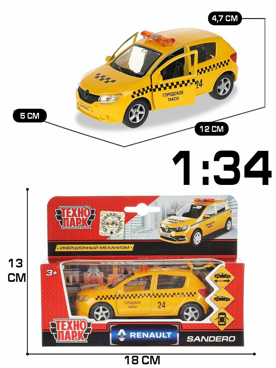 ТМ ТЕХНОПАРК. МЕТАЛЛ RENAULT SANDERO ТАКСИ 12СМ ОТКРЫВ. ДВЕРИ БАГАЖНИК ИНЕРЦ. В КОР. в кор.2*24шт (SB-17-61-RS(T)-WB)