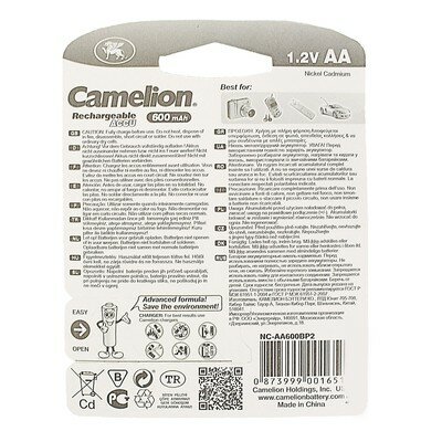 | Совместимость | Никель-кадмиевые перезаряжаемые аккумуляторы Camelion предназначены для длительного использования в приборах. Заряжать при помощи специализированного зарядного устройства. |