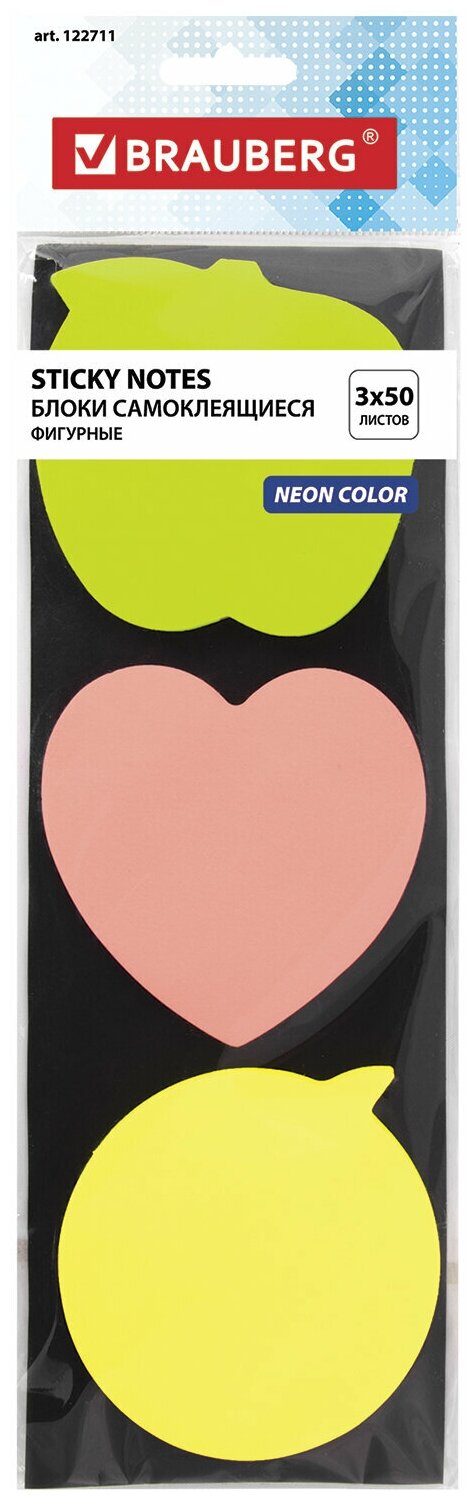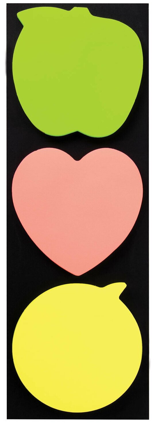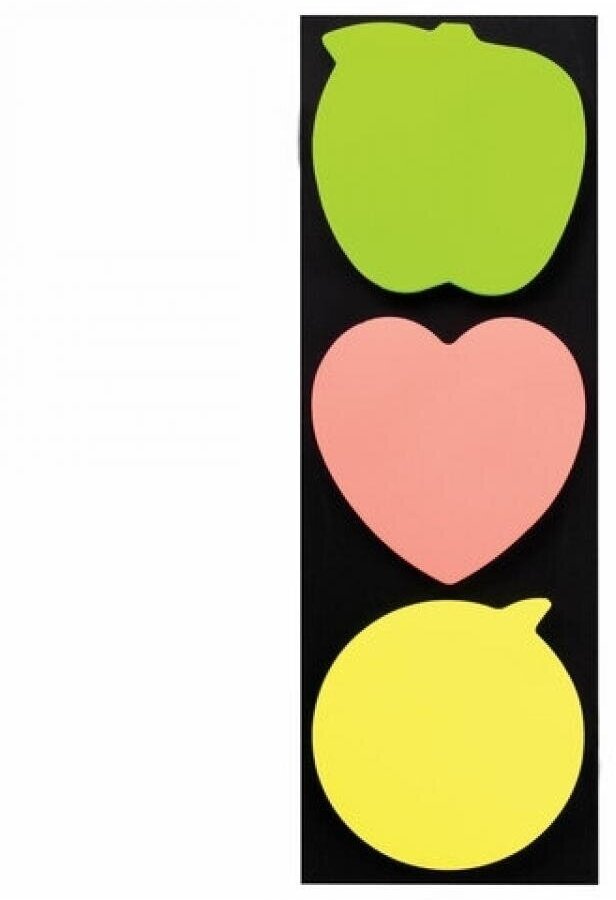 Бумага для заметок с клейким краем BRAUBERG рекомендуется для использования в процессе совещаний, обучения, мозговых штурмов. Идеально подойдет для работников офиса и руководителей. Набор из 3 фигурных стикеров неоновых цветов (желтый, розовый, зеленый) в форме яблока, лимона, сердца 70х70 мм состоит из 3 блоков по 50 листов. Плотность бумаги составляет 75 г/м2. Клейкий слой - 35 Н/м. Легко клеятся к любой поверхности. Не оставляют следов. Упакованы в полиэтиленовый пакет с европодвесом. Чтобы стикеры держались дольше, следуйте рекомендациям по использованию: