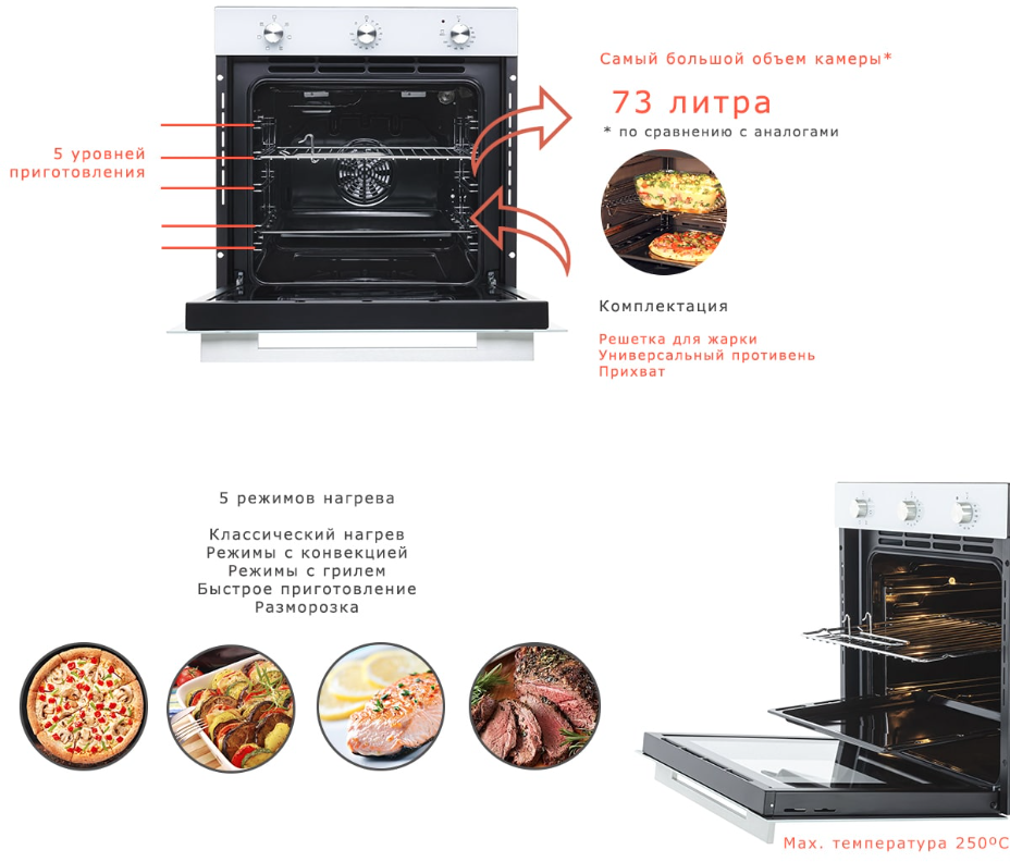 | Особенности | гриль, конвекция, таймер, подсветка камеры, вентилятор охлаждения, защитное отключение |