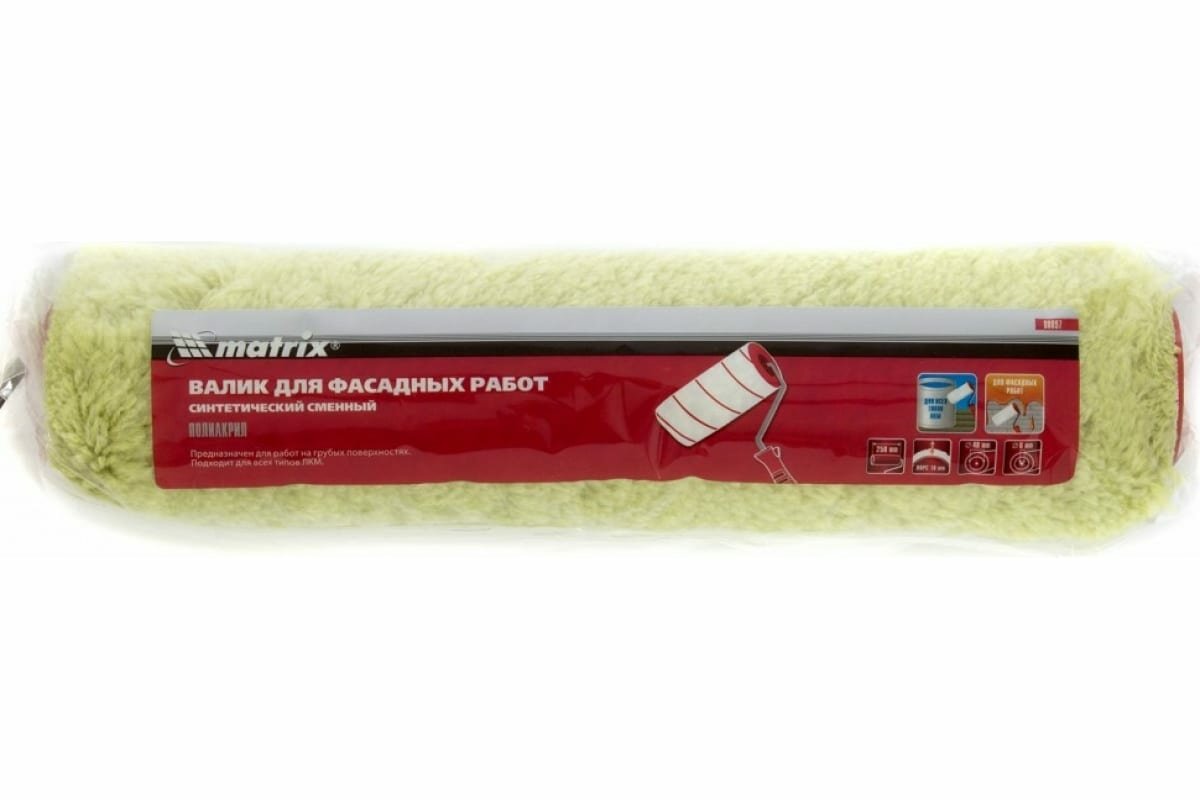 Валик смен. для фасад. работ синтетич. 250мм ворс 18мм D 40мм D ручки -6мм полиакр.// Matrix 80897