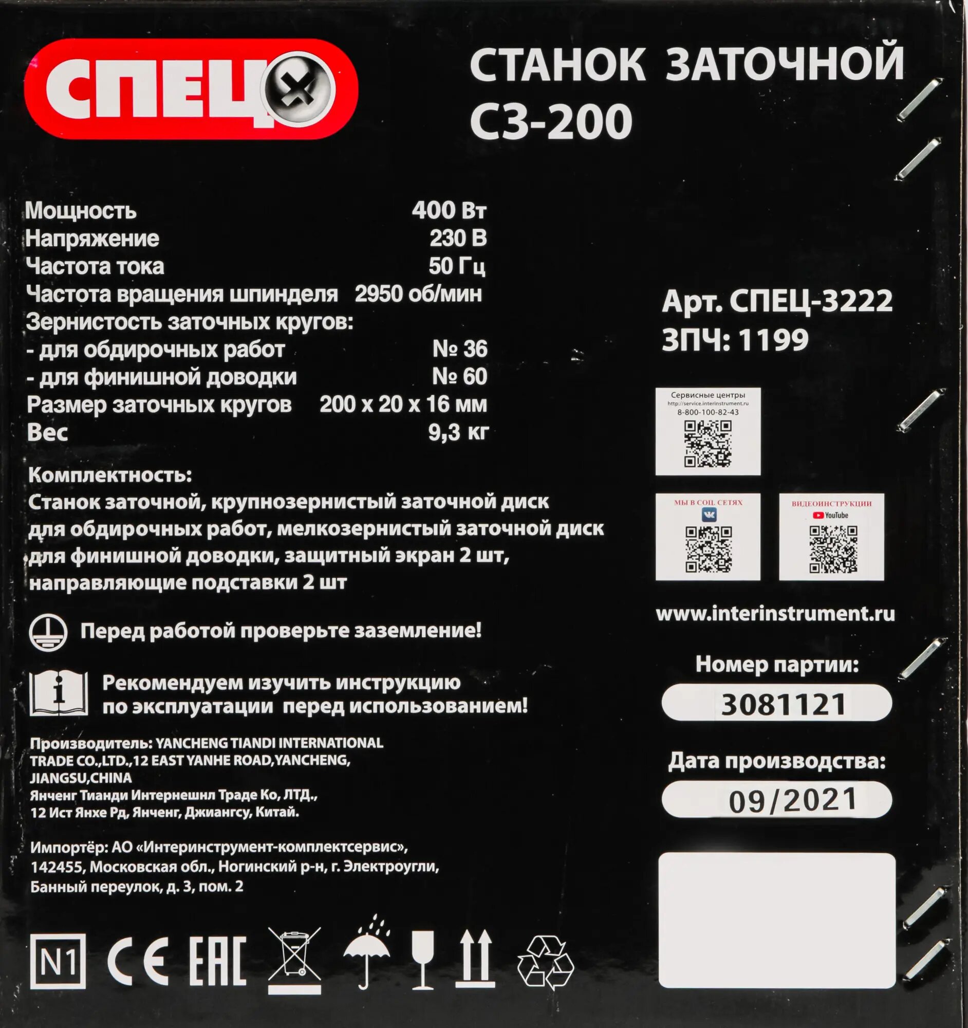 Станок точильный Спец СЗ-200 200 мм