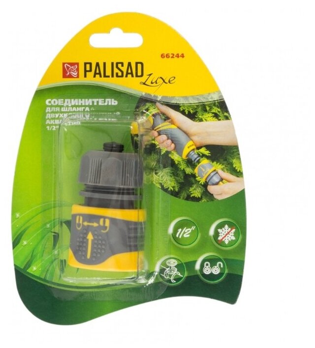 Соединитель для шланга 1/2", аквастоп, двухкомпонентный, LUXE// Palisad