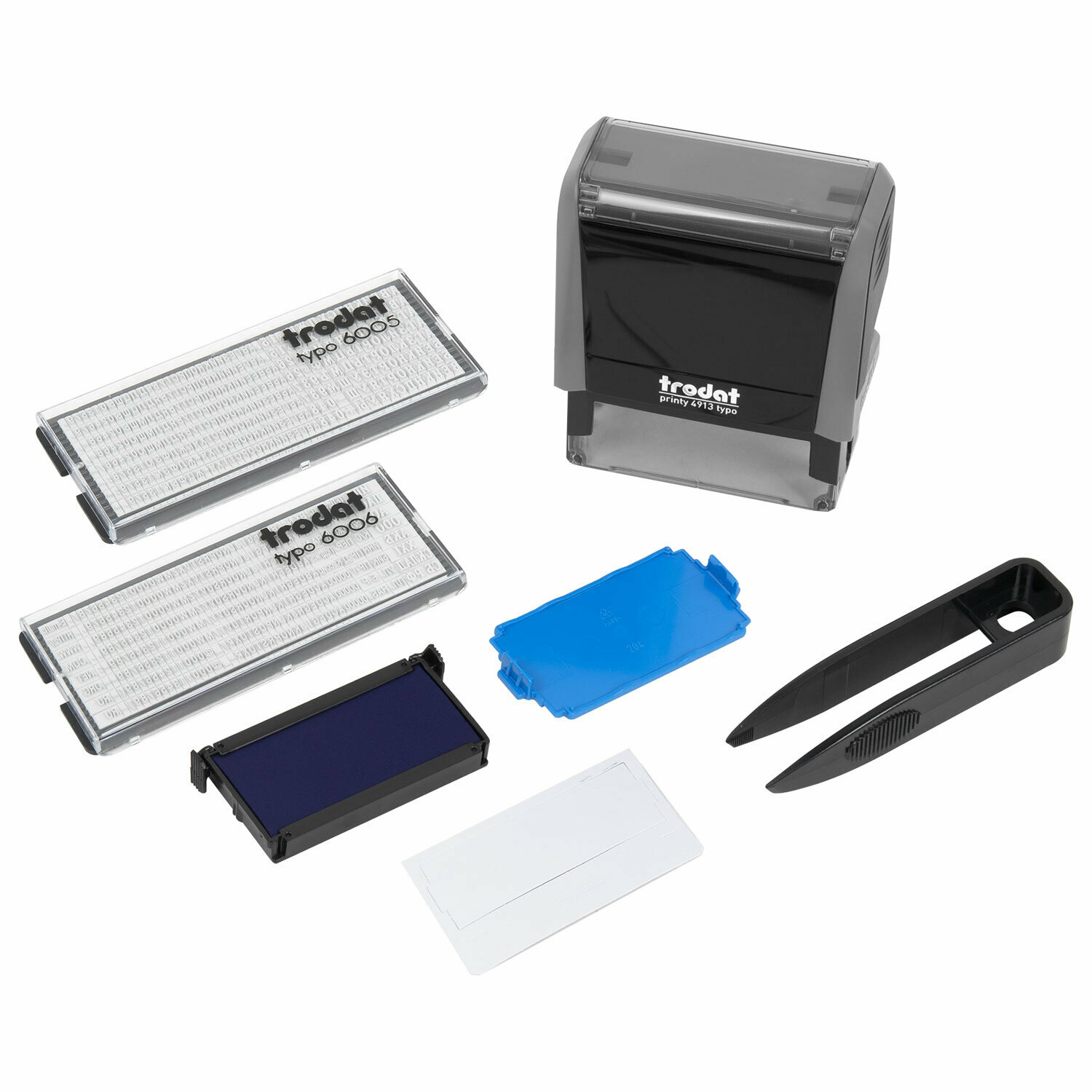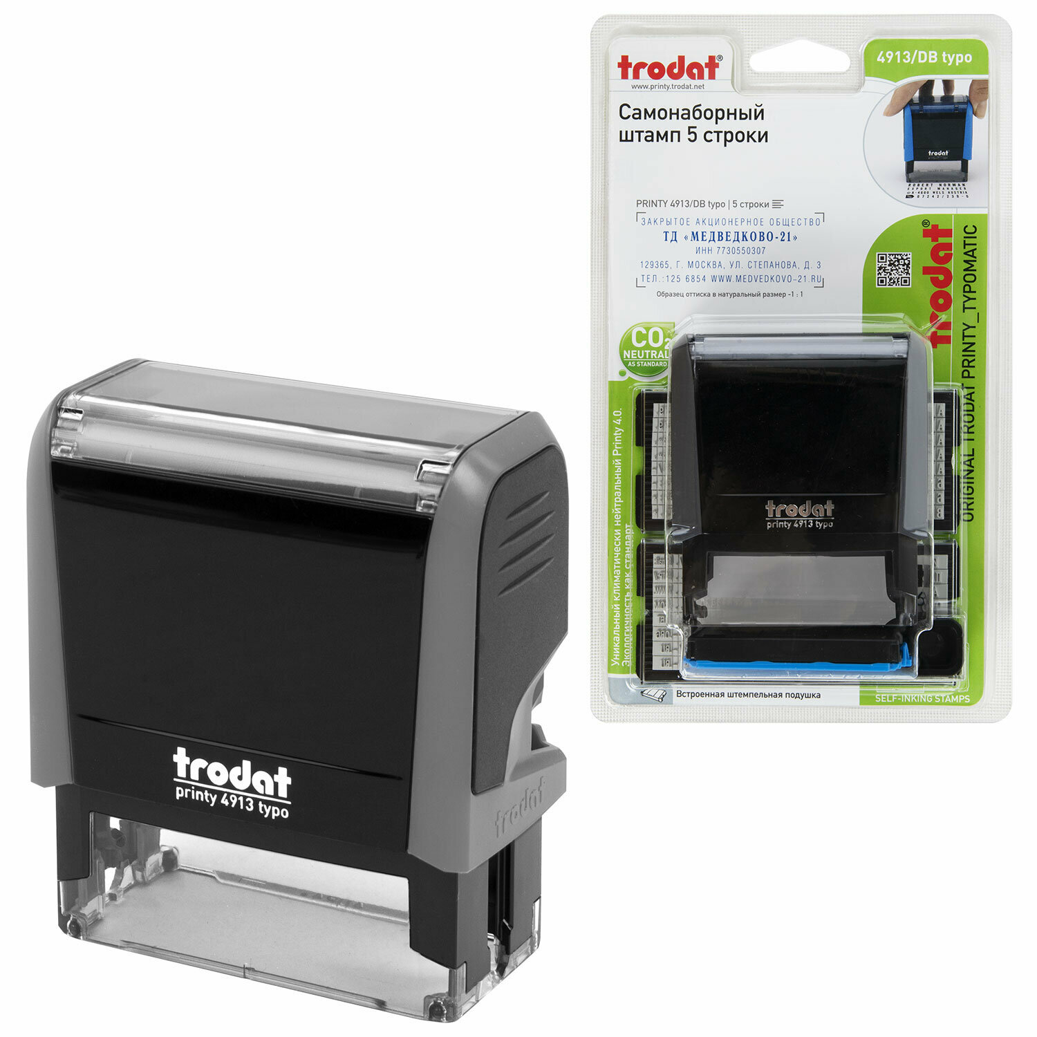 Штамп самонаборный 5-строчный оттиск 58х22 мм синий без рамки TRODAT 4913P4/DB (Австрия) корпус синий кассы в комплекте 4913/DB