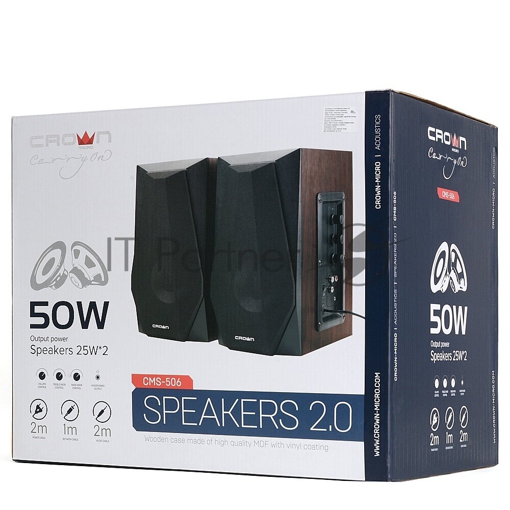 Акустическая система 2.0 CROWN CMS-506 (МДФ 220V 50W; управление Volume/Treble/Bass кнопка включения Длина кабеля между колонками 1м;Длина аудио-кабеля и питания 2м jack out)