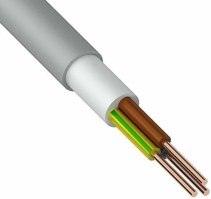 Кабель NUM-J (NYM) выполнен из медной, однопроволочной токопроводящей жилы, круглой формы, соответствует первому или второму классу требованиям ГОСТ 31996-2012. Изоляция жилы состоит из поливинилхлоридного пластиката. Изоляция кабеля выполнена из двух материалов, первый ? это пластикат экструдированной мелом наполненной безгалогеновой композиции и второй ? наружная оболочка, выполненная из поливинилхлоридного пластиката. Кабель делают по немецкому стандарту VDE.