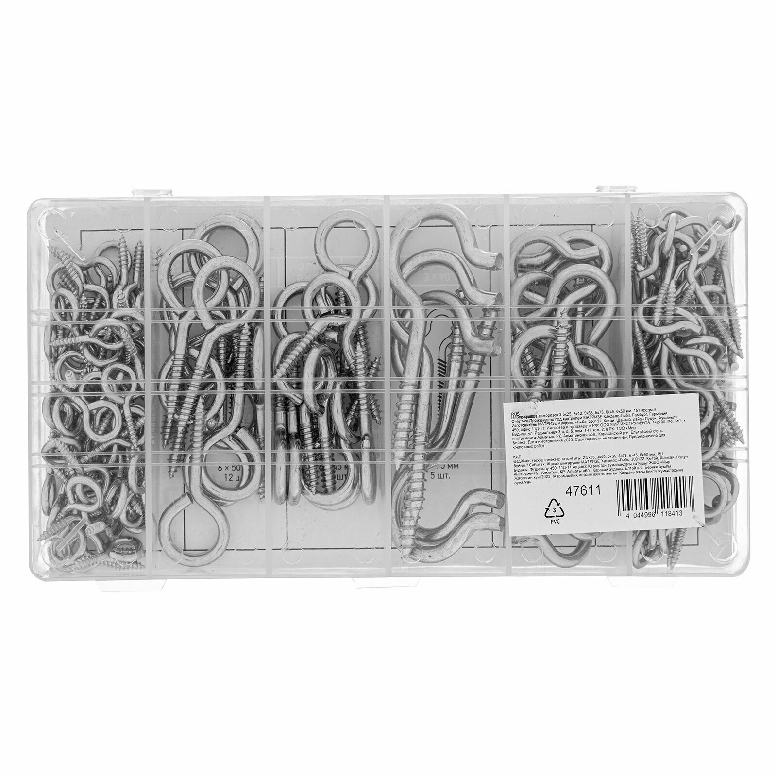 | Прочие | Набор крюков-саморезов 2,5х25, 3х40, 5х65, 5х75, 6х45, 6х50 мм, 151шт. |