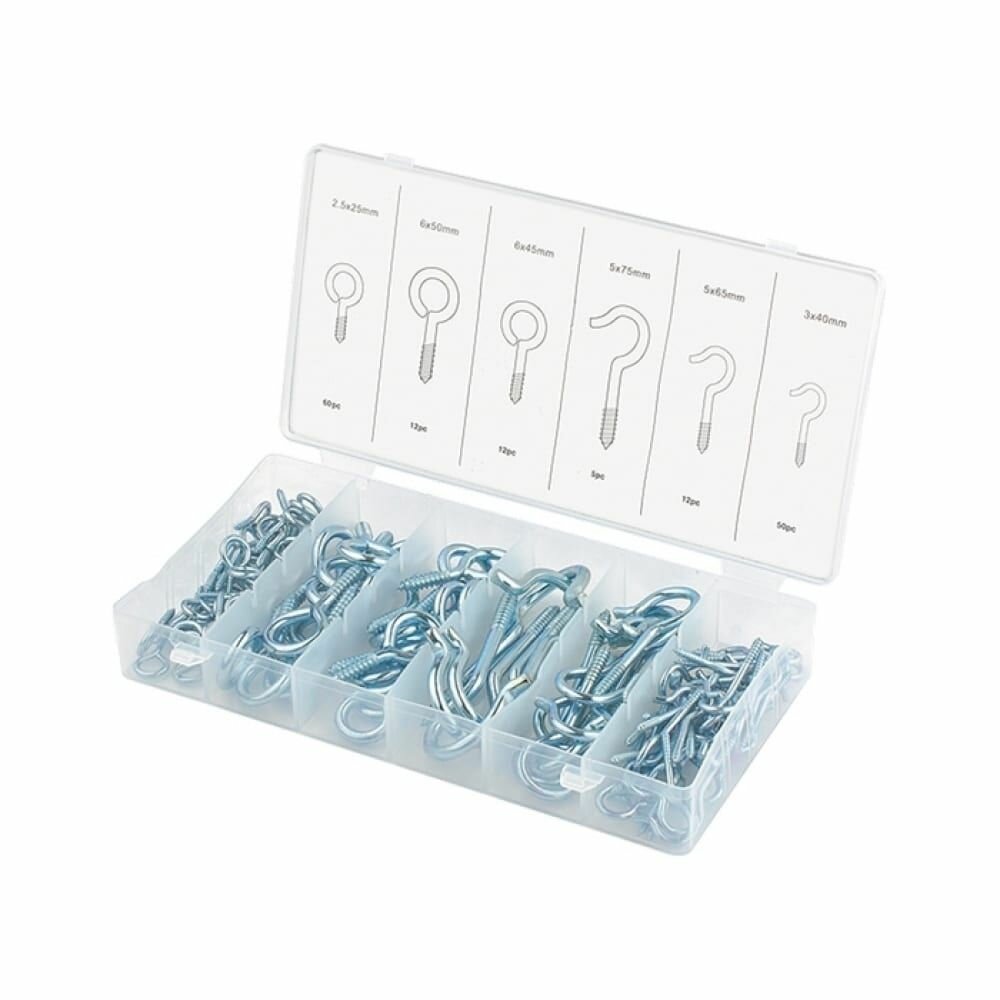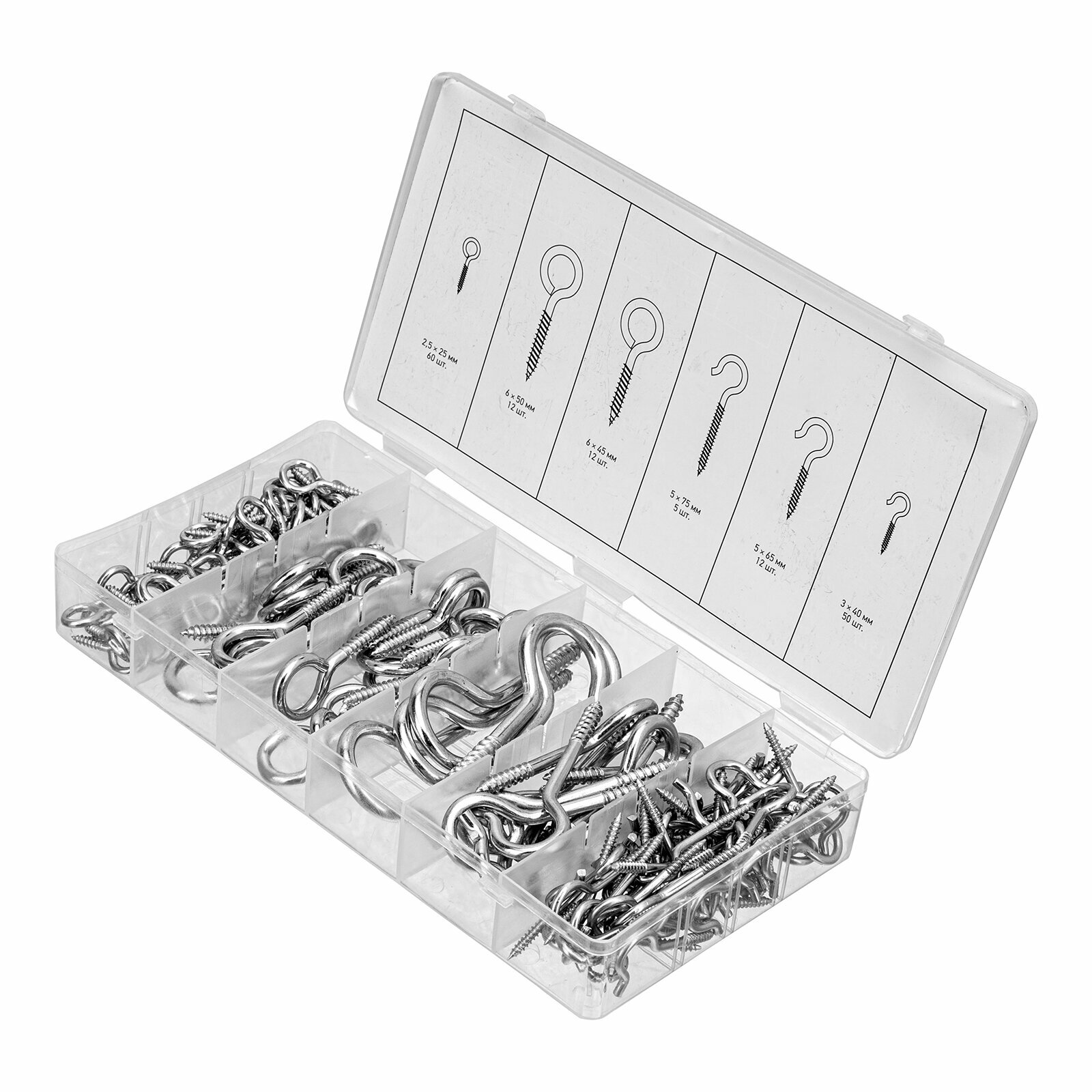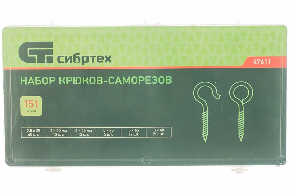 Набор крюков-саморезов 2,5х25, 3х40, 5х65, 5х75, 6х45, 6х50 мм, 151 предм.// Сибртех