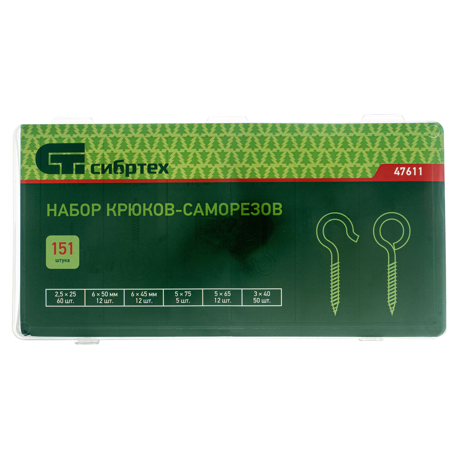 Набор крюков-саморезов 25х25 3х40 5х65 5х75 6х45 6х50 мм 151 предм.// Сибртех (47611)