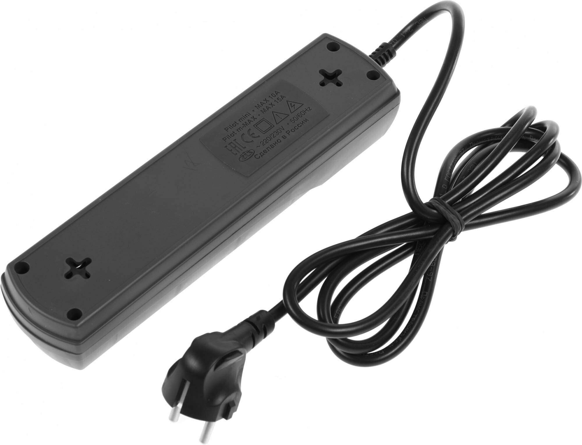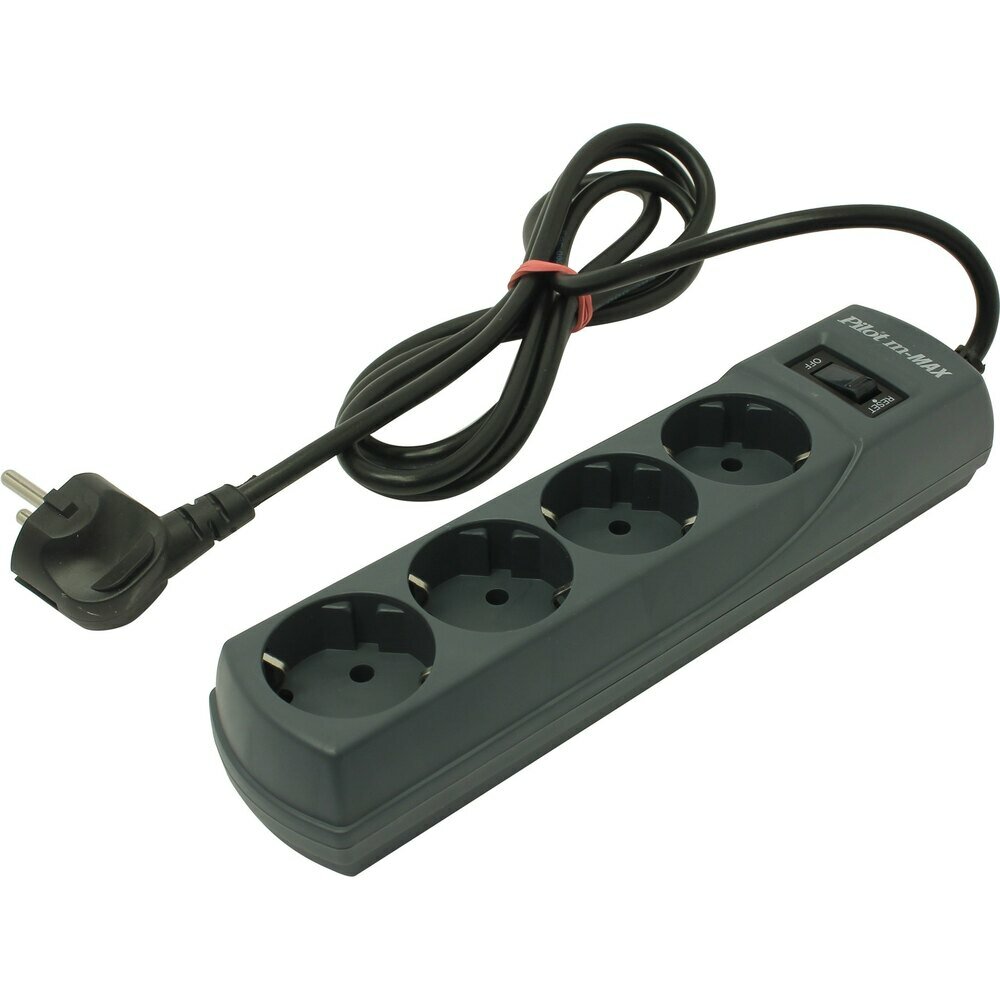 Surge protector Pilot m Max 4 euro outlets, 15А/3.3кВа, 1.8m, black