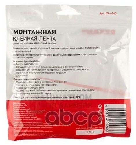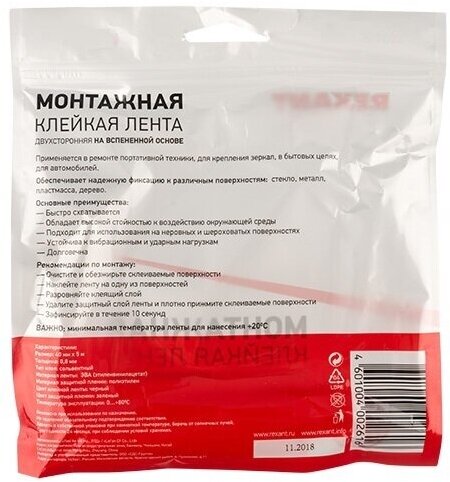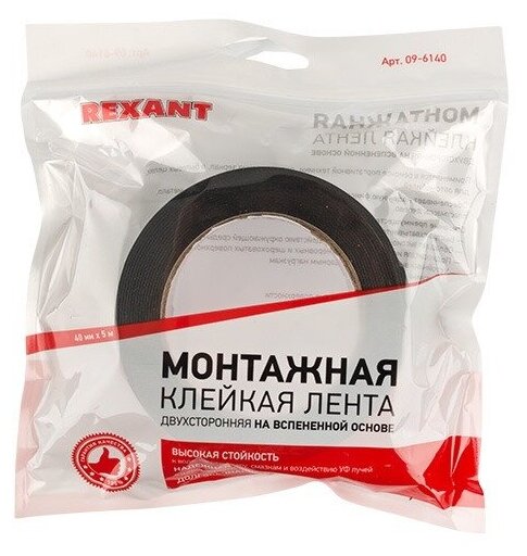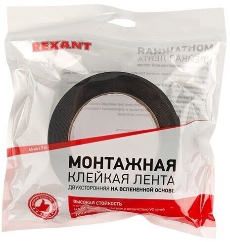 Двухсторонние клейкие ленты REXANT на основе ЭВА (вспененный полиэтилен черного цвета), благодаря вспененной основе обладают высокими клеевыми свойствами, способными склеивать различные по структуре поверхности, позволяя повторять форму рельефа поверхности, тем самым заполняя их неровности (дерево и пластик, стекло и ДСП), также подходит для крепления молдингов, зеркал, пластиковых профилей.